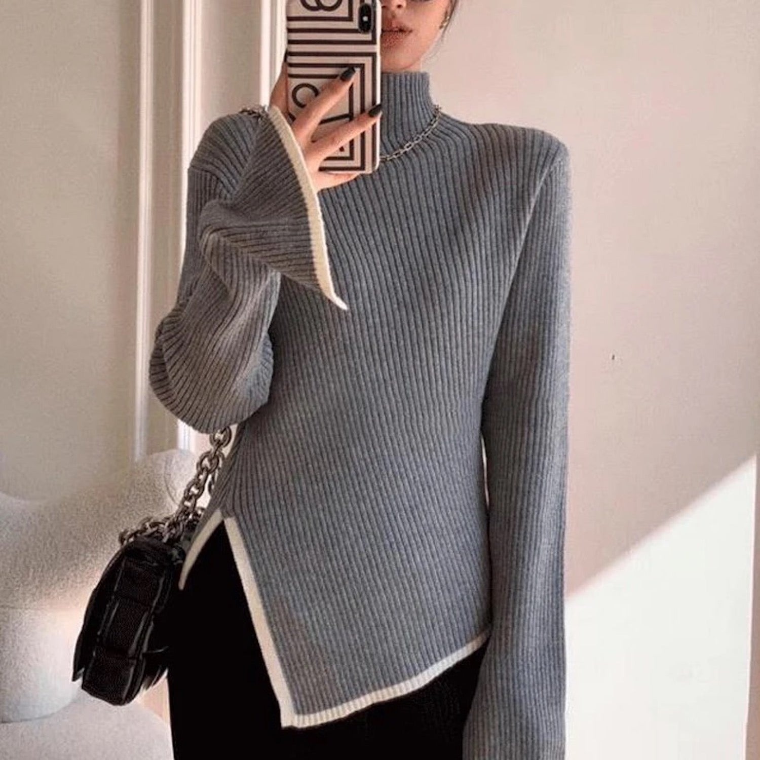 Of je nu op zoek bent naar een trui voor een avondje uit in de stad of een gezellige avond thuis, deze stijlvolle zwarte trui met witte accenten is de perfecte keuze.